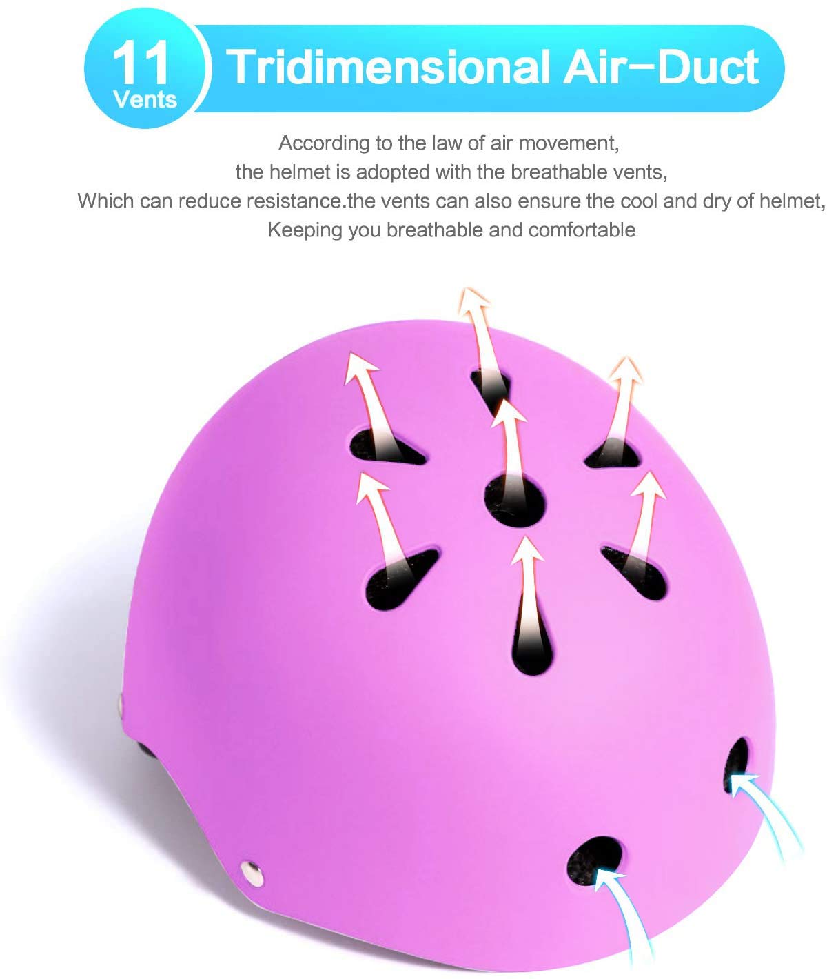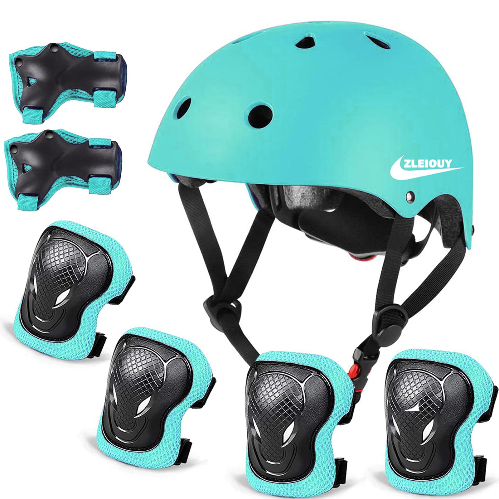 Adjustable kids bike helmet with 360-degree fit system for ages 2-16. Lightweight ABS + EPS foam construction with soft chin straps and 11 ventilation holes keeps kids cool and comfortable. Available in Small (48-54cm) and Medium (54-58cm) sizes. Includes 2 knee pads, 2 elbow pads, and 2 wrist guards. Perfect for cycling, skating, skateboarding, and scooters. Easy-adjust dial and buckle for secure, hassle-free fastening. Durable, washable, and ideal for active outdoor play.